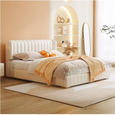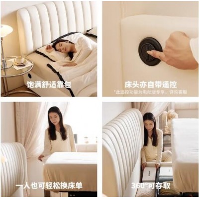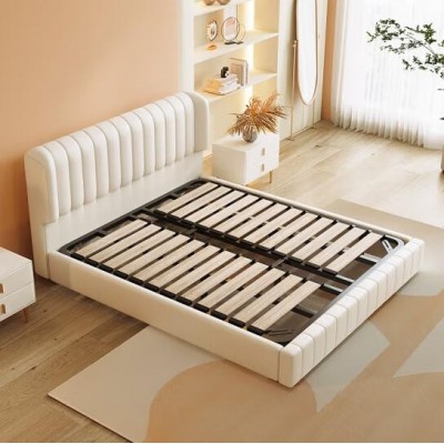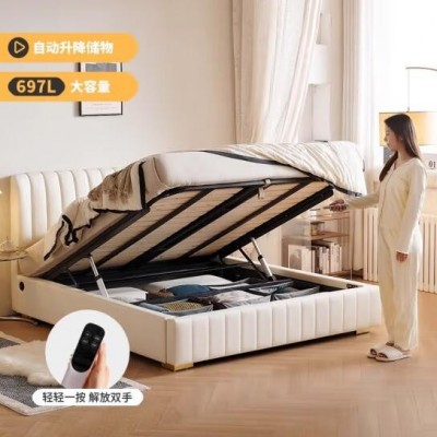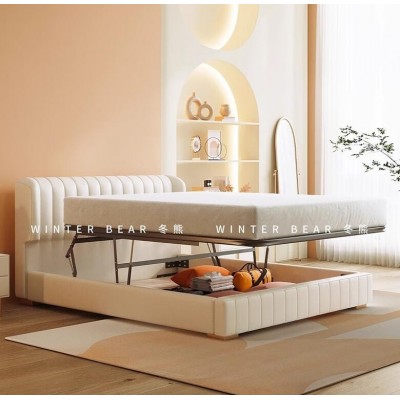 现代简约真皮储物高箱床多功能双人主卧婚床意式轻奢软包大床 生态皮床/松木排骨架+D18床垫