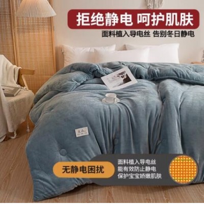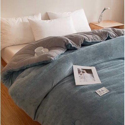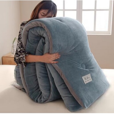 加厚双面牛奶绒被子冬季保暖冬被双人春秋被加厚宿舍单人被芯被褥 双面牛奶绒-蓝色 150x200cm