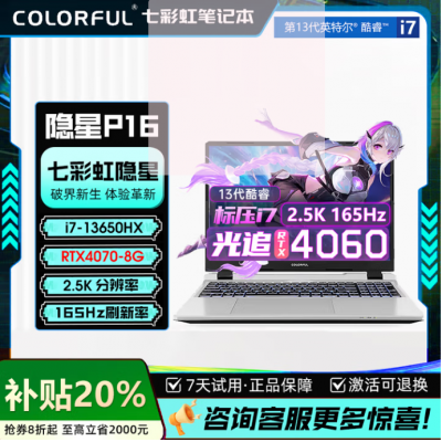 七彩虹隐星P16笔记本电脑将星酷睿i7高性游戏本4060独显轻薄本设计锐龙 将X15:i5-12450/3060展示机