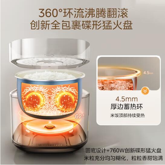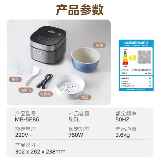 美的电饭煲电饭锅5L大容量4-5-10个人电饭锅家用青瓷圆灶内胆柴火饭智能预约多功能饭煲蛋糕煮粥煮饭锅