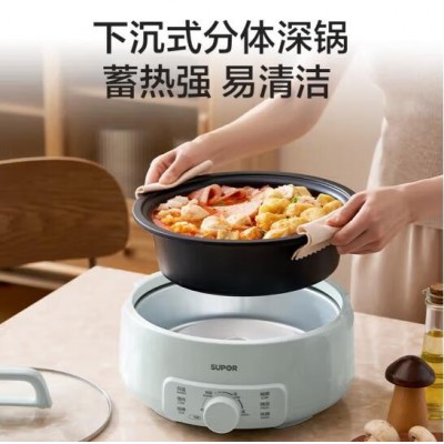苏泊尔分体式电火锅1-2-3人家用火锅专用锅3L小容量电煮锅 旋钮控温 1300W大火力 炖煮一体多功能锅